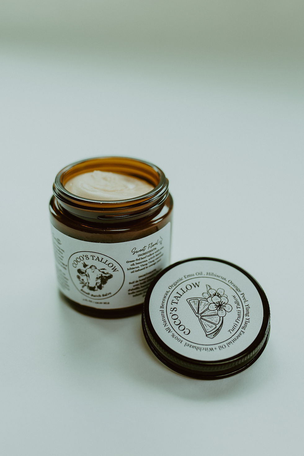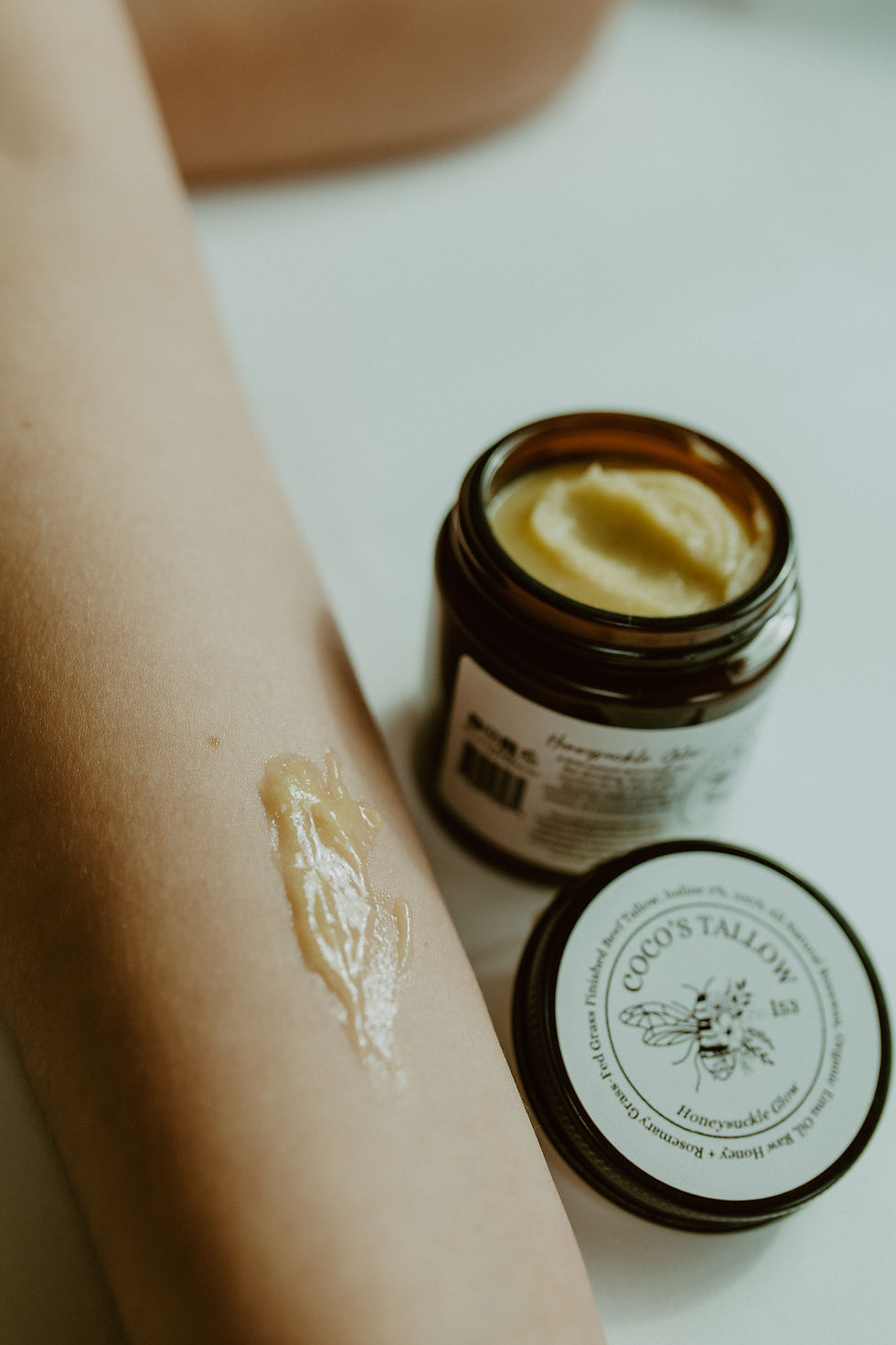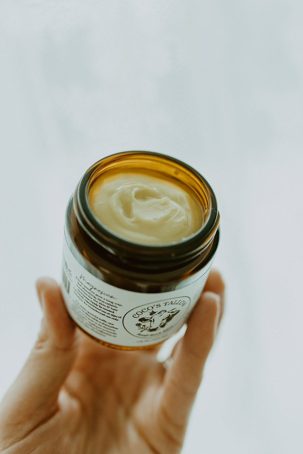 Handmade in small batches with absolutely zero additives.​ Tallow is an intense moisturizer that your skin already shares biology with therefore your skin recognizes tallow as bioavailable immediately upon absorption. ​Tallow contains Vitamins A,K,D,E & B12 as well as conjugated Linoleic Acid (CLA) with natural anti-inflammatory properties. Also present are Aleic Acid (omega 9), Palmitic Acid, and Stearic Acid.